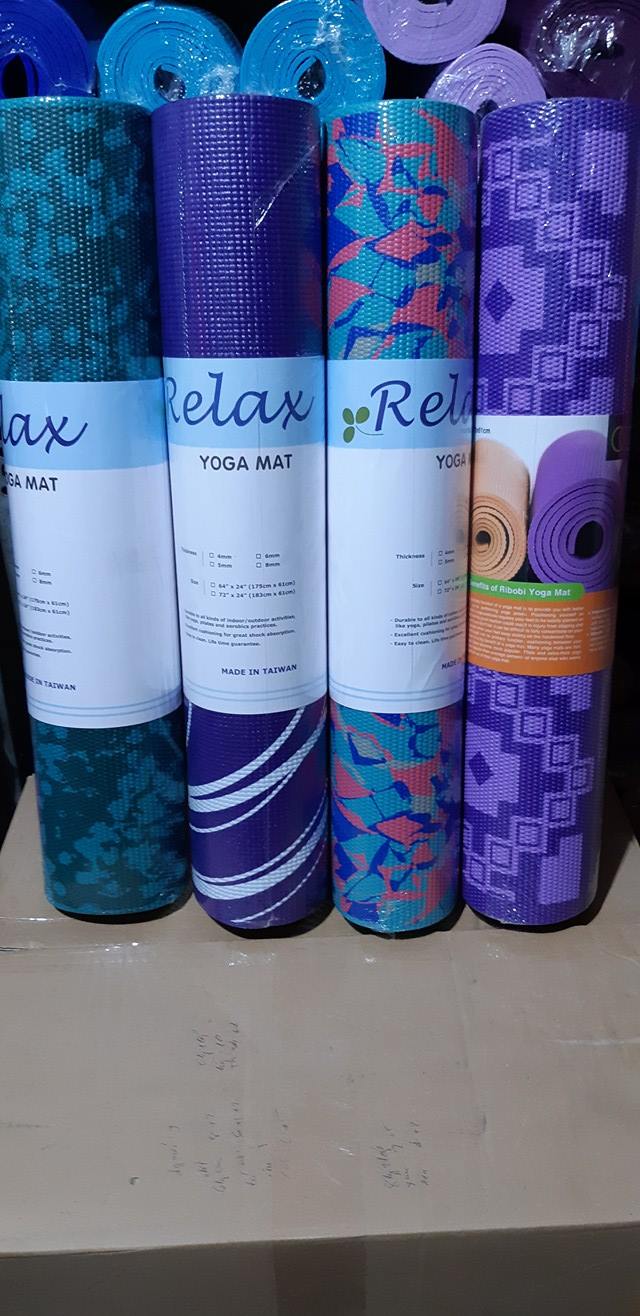 Thảm Yoga 6 mm 2 lớp TPE nhãn hiệu RELAX của nhà máy TAIWAN sản xuất có các hoa văn đẹp mắt, Hàng xuất dư, chất lượng dai bền, bám tốt, chống trơn trợt.
