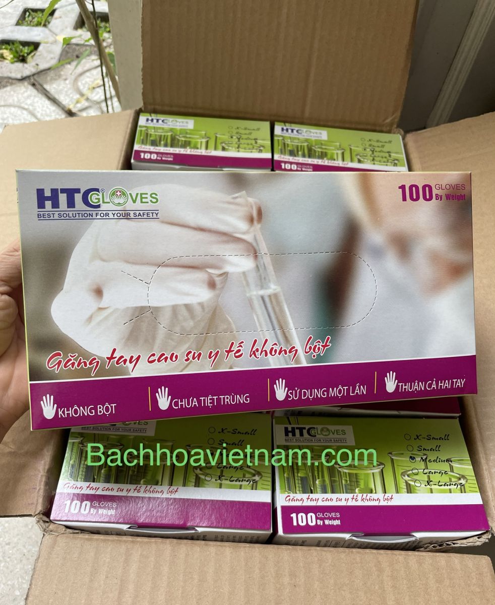 Găng tay y tế HTC Gloves latex không bột được sử dụng trong khám chữa bệnh, nha khoa, chăm sóc sắc đẹp. Giúp bảo vệ đôi tay và phòng các bệnh truyền nhiễm.
