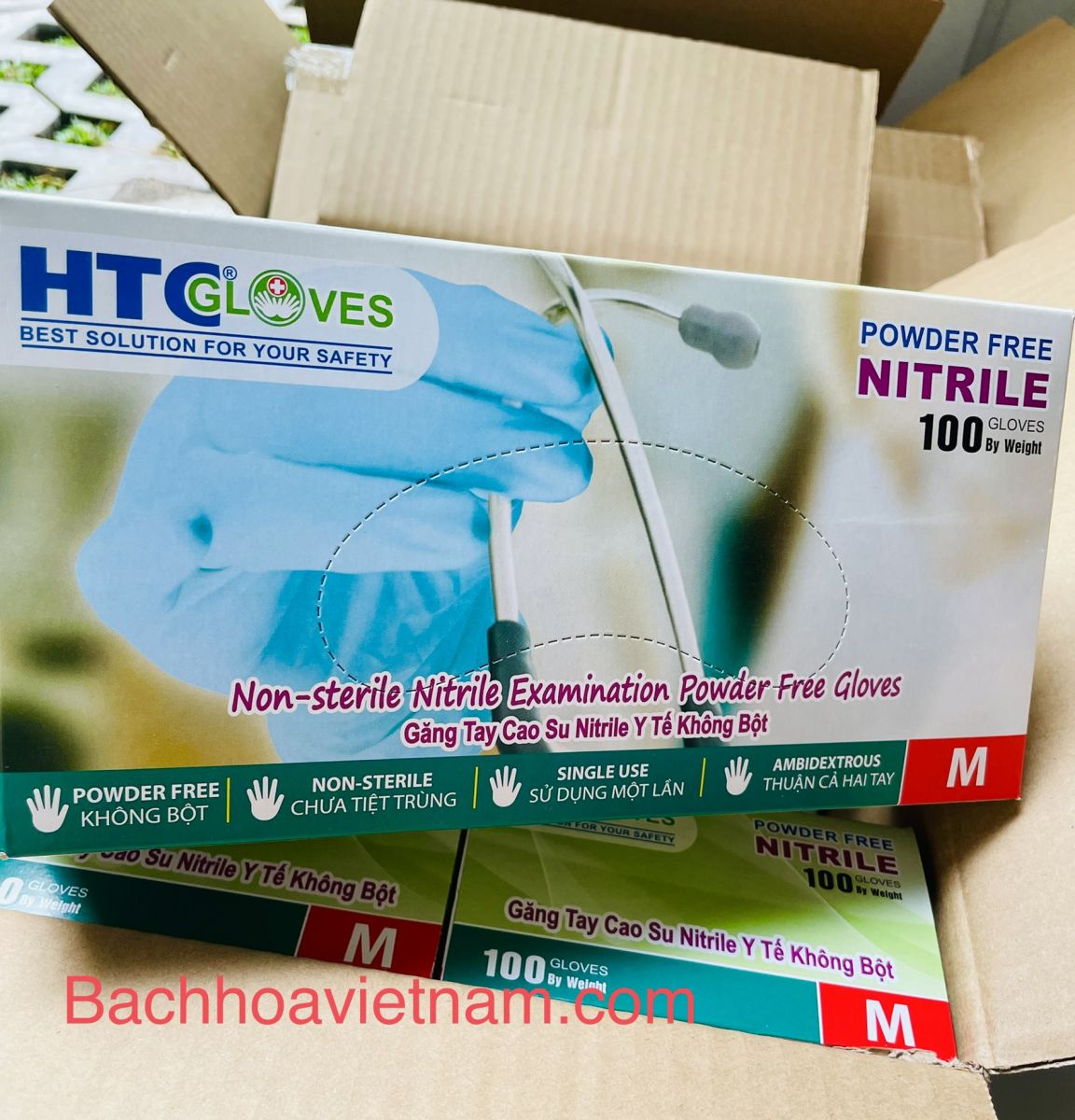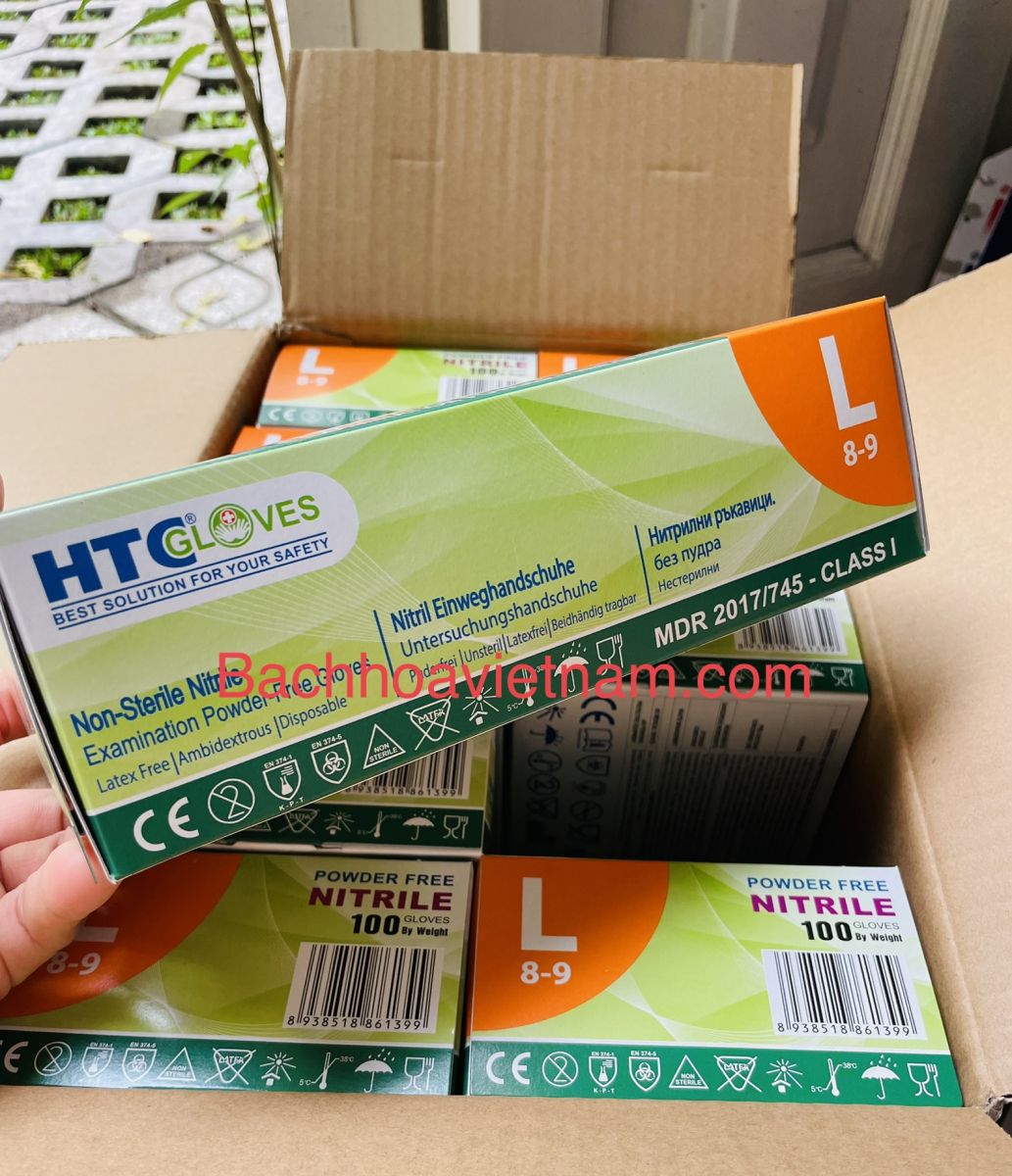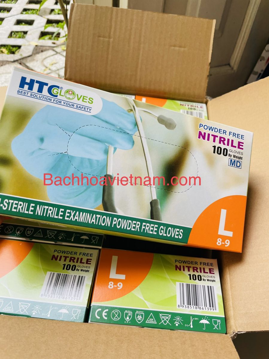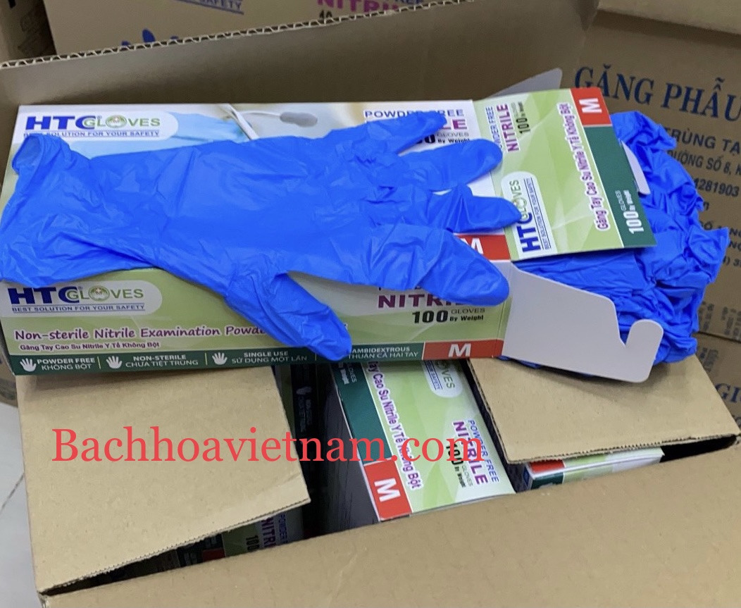 Găng tay y tế KHÔNG BỘT Nitrile màu xanh HTC Golves 1 hộp 100 chiếc (50 đôi)